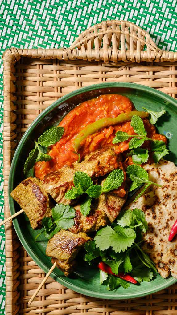 7. Servez les pitas avec la salade et le Berloumi. Servez accompagné de raita et de quelques piments verts.