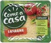 Gegrilde groenten of Zalm ± 375 g of Bolognese, Verde of Met kip ± 400 g Bolognese - € 11,00/kg Gegrilde groenten - € 14,50/kg