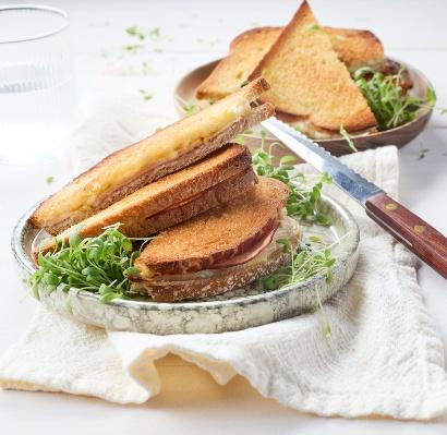 Tip Wil je je croque-monsieur niet in de oven bakken? Gebruik dan een grillpan. Verhit er een beetje olijfolie in, leg de croque erin en bak 2 min. aan elke kant goudbruin. Druk tijdens het bakken lichtjes aan voor een mooi grillpatroon.