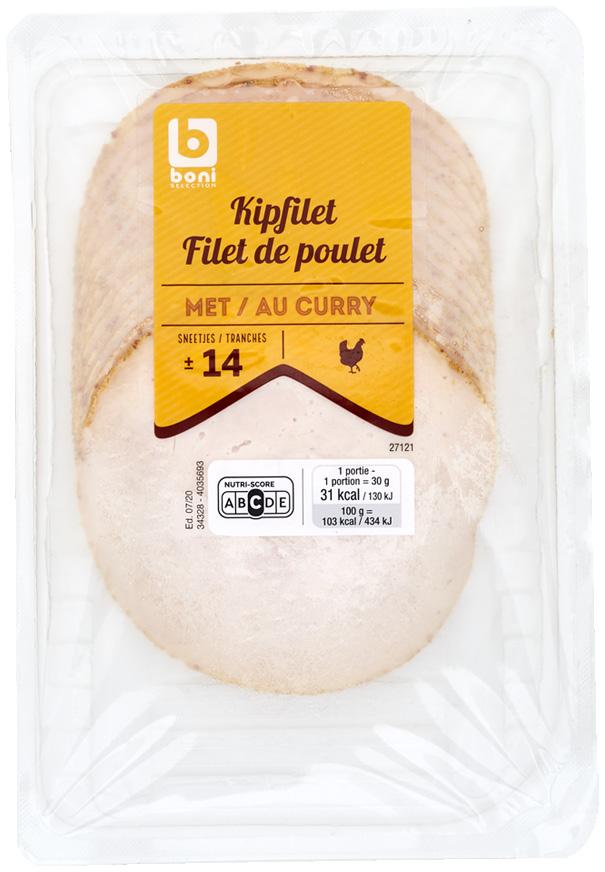 filet de poulet au curry ± 14 tranches 150 g € 2,95 € 19,67/kg
