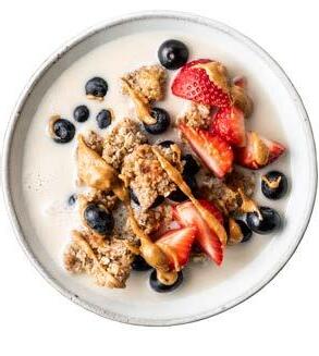 milde kokosyoghurt, yoghurt met mangovanille, met stracciatella of met blauwe bessen