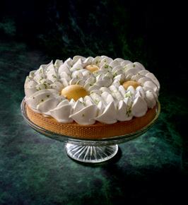 Eindejaarstaart met mango, passievrucht en meringue (6 à 8 pers.) ....................... € 39/st.