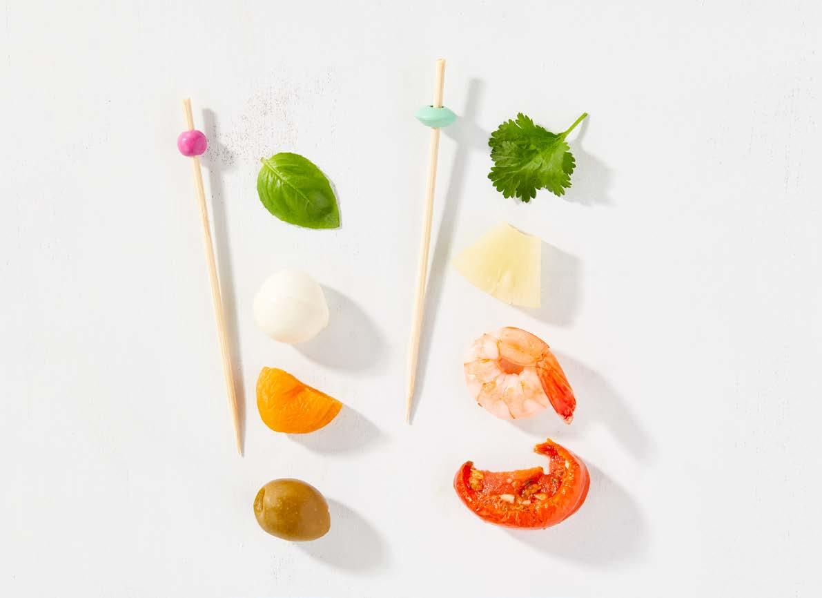 1 Coupez des rondelles de concombre de 0,5 cm. Tranchez les fraises en 2. 2 Tartinez les rondelles de concombre d’une couche de gorgonzola et garnissez d’une demi-fraise. 3 Piquez une feuille de basilic sur un bâtonnet et fixez le tout dans la fraise.