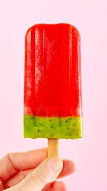 1 Équeutez les fraises et mixez-les dans un récipient à bord haut ou un blender avec le Spa Fruit. Remplissez les moules à glaces jusqu’à 1 cm du bord et réservez-les au congélateur. Enfoncez-y un bâtonnet après 1 h. Laissez ensuite reposer à nouveau 1 h au congélateur. 2 Épluchez les kiwis et mixez-les finement dans un blender ou un récipient à bord haut avec un mixeur plongeur. 3 Hors du congélateur, complétez les moules à glaces avec le kiwi. Laissez prendre au moins 6 h au congélateur.