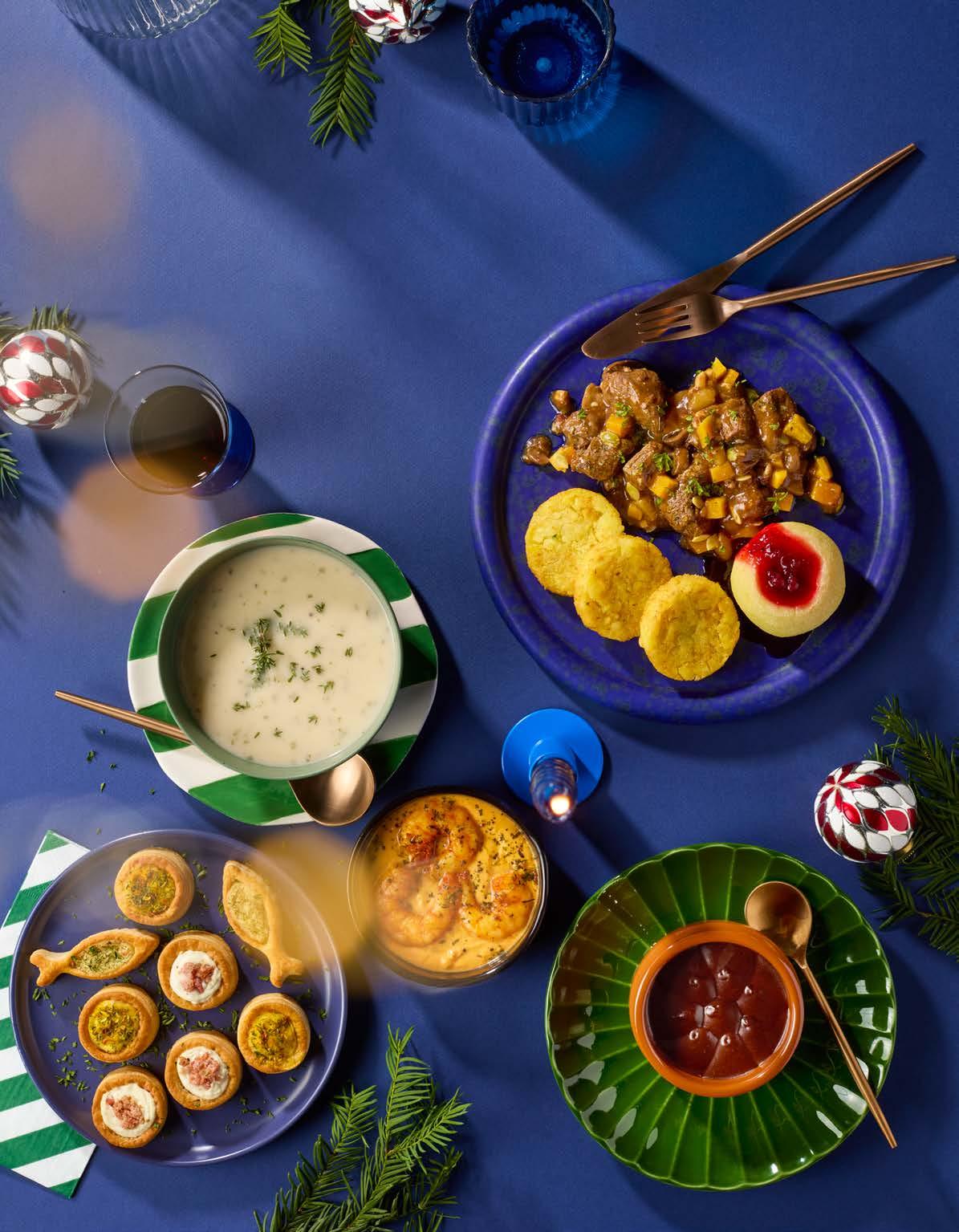 Kies uit 8 menu’s: lekkere combinaties van feestelijke klassiekers en verrassende smaken.