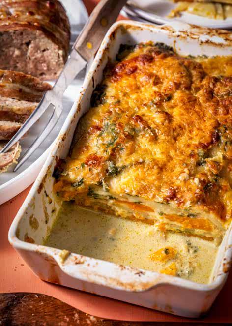 14 Gratin crémeux de pommes de terre au potiron, épinards et fromage
