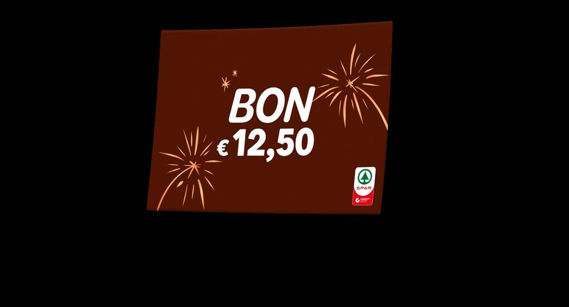 *Non échangeable en espèces. Montant d’achats minimum calculé après déduction de toutes les réductions et excepté les consignes. Valable sur tout l’assortiment, excepté les articles pour fumeurs, cartes-cadeaux, cartes de recharge, journaux, revues, timbres, sacs-poubelles communaux et articles de la Loterie Nationale. Uniquement valable dans les magasins Spar de Colruyt Group. Vous pouvez utiliser 1 bon de valeur par tranche d’achats de € 25. Maximum 20 bons de valeur par Xtra.