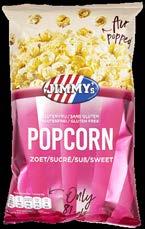 JIMMY’S popcorn zoet 150 g of zout of sweet and salt 100 g € 3,58 2 voor € 2,83 hetzij vanaf € 9,43/kg - € 075 bij aankoop van 2 verpakkingen