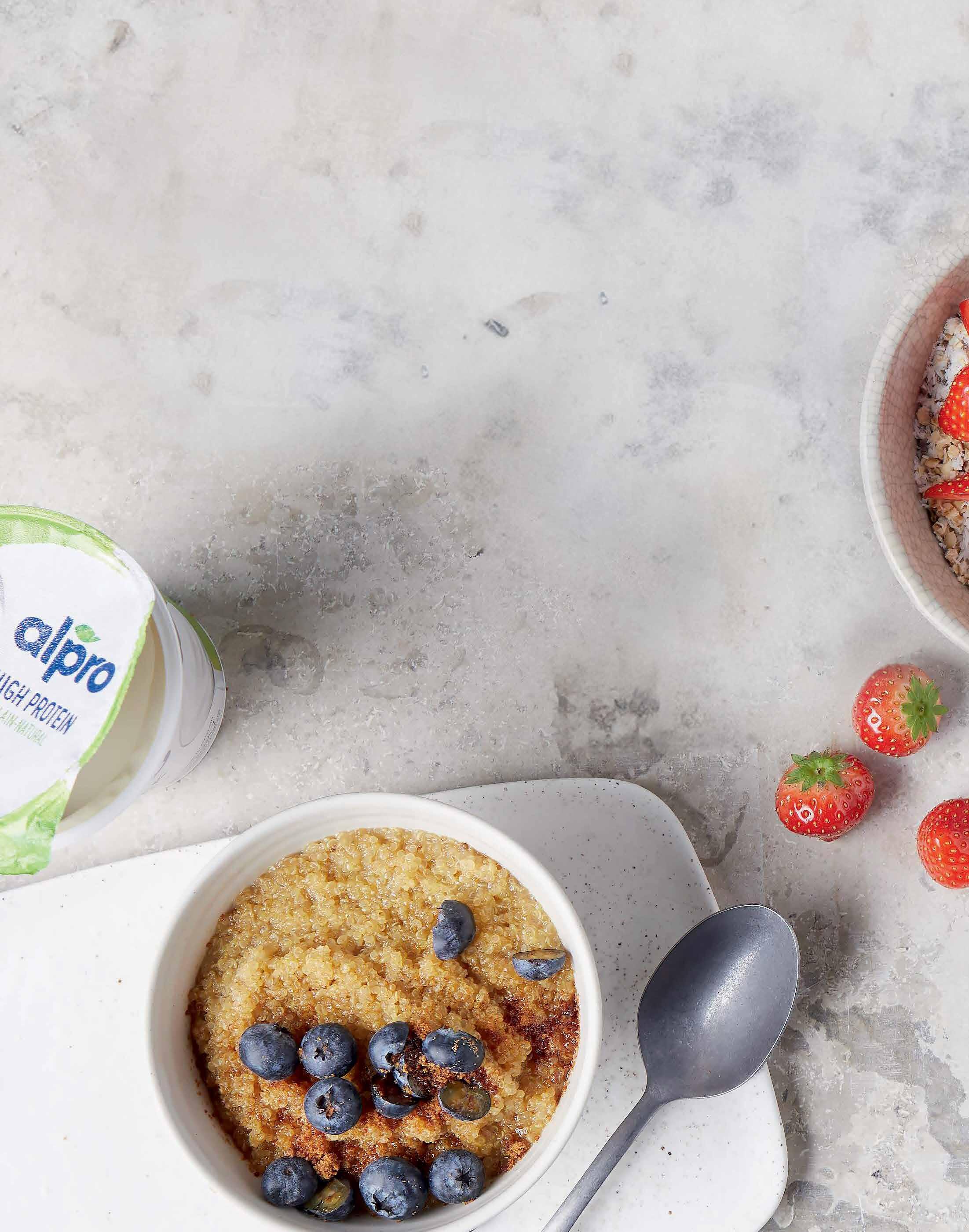 • Gemakkelijk de avond voordien klaar te maken: laat havermout met (plantaardige) melk een nachtje wellen in de koelkast.