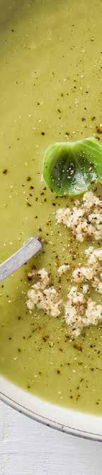 Une soupe ultra-réconfortante et relevée qui est parfaite pour se faire plaisir. La vedette, c’est notre classique hivernal : les choux de Bruxelles. À l’instar des poivrons, ils regorgent de vitamine C, mais ils sont également riches en vitamine K, qui est importante pour avoir des os solides et une bonne coagulation sanguine. Ce qui les rend vraiment spéciaux, c’est leur teneur élevée en fibres et en antioxydants, qui favorisent une bonne digestion et protègent les cellules des inflammations. C’est également bon pour votre cœur et votre glycémie. Les champignons shiitakés qui les accompagnent apportent une délicieuse touche umami. Un pur réconfort en un seul bol !
