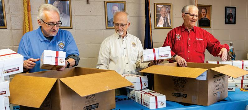 SANTA CUENTA CON ayudantes adicionales esta Navidad, gracias a más de 130 consejos en todo Estados Unidos que se han asociado con Cross Catholic Outreach. Durante casi una década, los Caballeros de Colón han transformado salones parroquiales en talleres navideños donde preparan Cajas de Alegría para niños de todo el mundo.