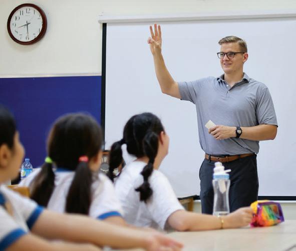 En la biblioteca de la Escuela Internacional Mar Qardakh en Erbil, Irak, se muestran libros cristianos escritos en árabe y una Biblia en siríaco (izquierda). La escuela K-12 y la Universidad Católica en Erbil han recibido apoyo de los Caballeros de Colón desde 2015 (ver página 10).