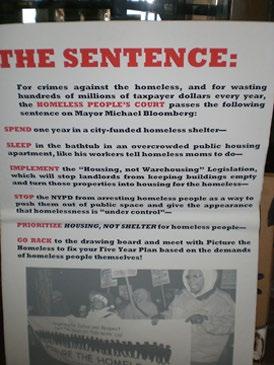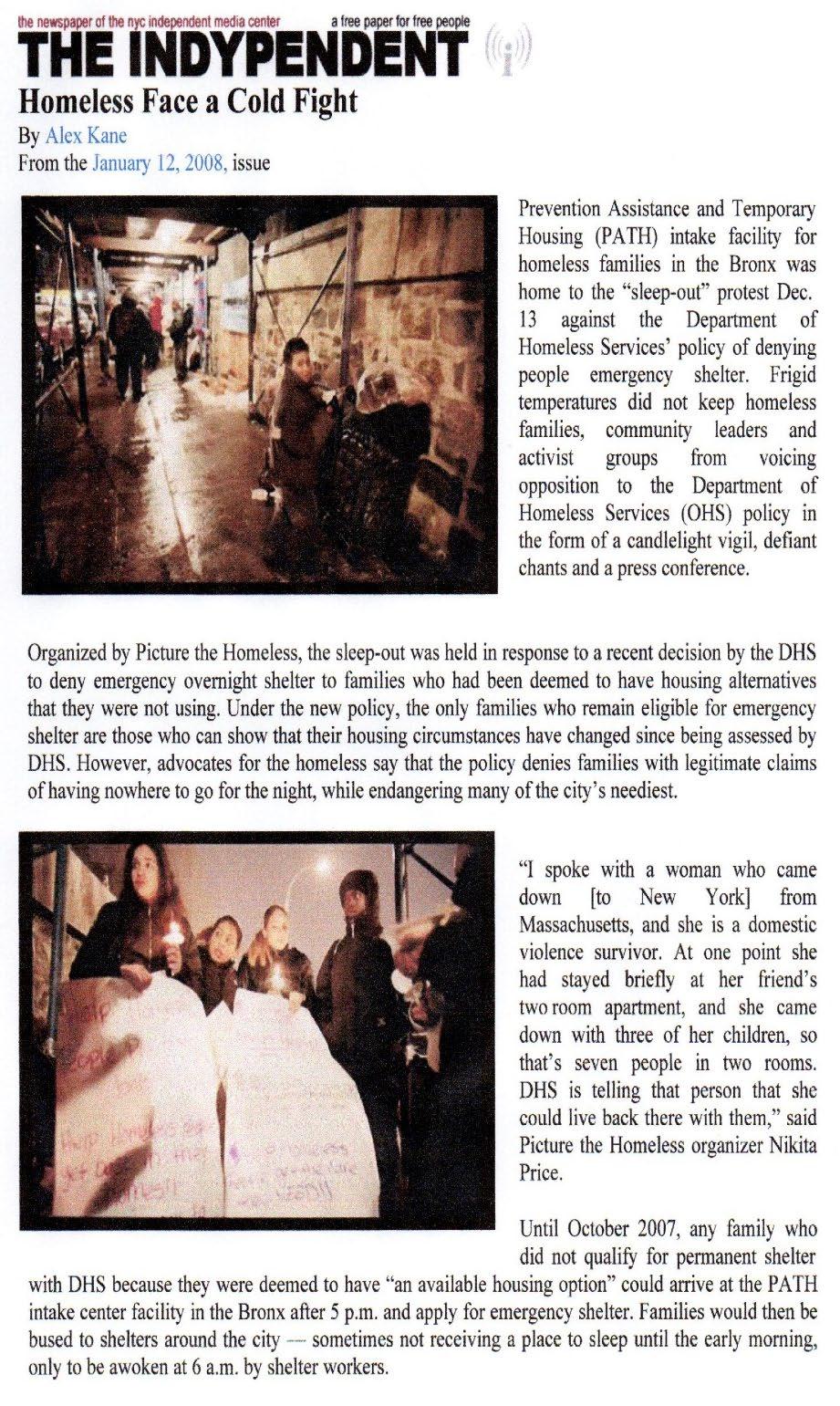 “The city has a problem: Bloomberg promised he would reduce the number of homeless New Yorkers by two-thirds by 2010. But people are still poor, and they can’t afford housing. So now, the city is making it even harder for families to enter the shelter system – they’re punishing the people who need housing for the simple fact that shelter numbers aren’t going down.” Sophia Bryant, Leader of Picture the Homeless Rental Subsidies Program.