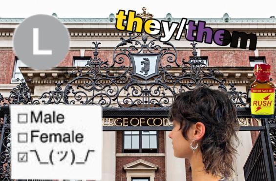 Happy first year of college you little queers! It’s so cute that you decided to come to a historically women's college because you love theorizing gender and also want to escape your suburban hometown for gay New York. <3 I too once entered Barnard College as a she/they with pink streaks in my hair. As a senior, I’m here to share some words of wisdom. Most people don’t just view gender as a “spectrum” and feel disconnected from their body and also have a crush on every single person with a mullet that they see and secretly wish that they were them…— YOU ARE NON-BINARY.