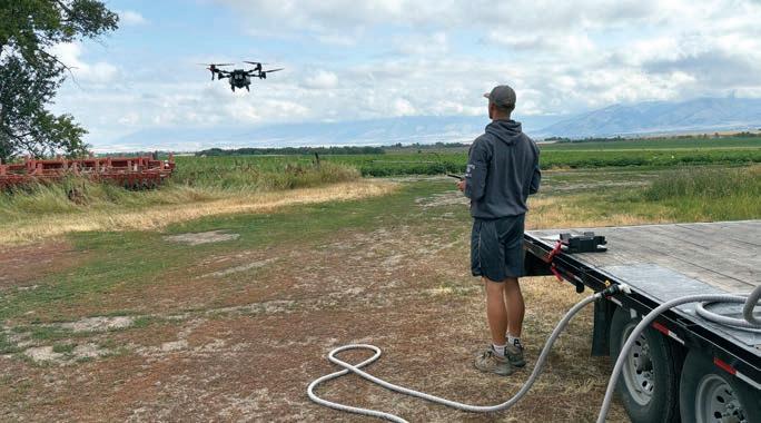 Willem Kimm uses a drone to spray a seed plot near Bozeman, Mont.