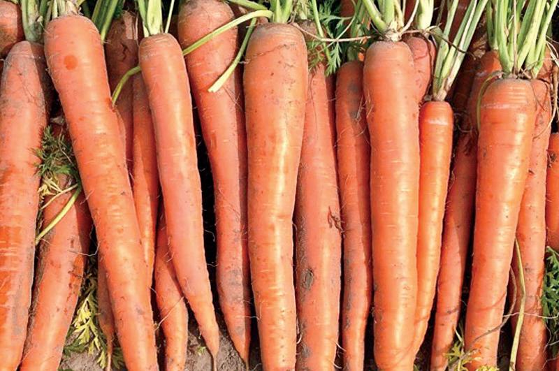 A Nantes type that produces very shapely, uniform, hairless roots 7-9 inches long. Crisp and sweet, Naval resists cracking with an added bonus of a long shelf life.