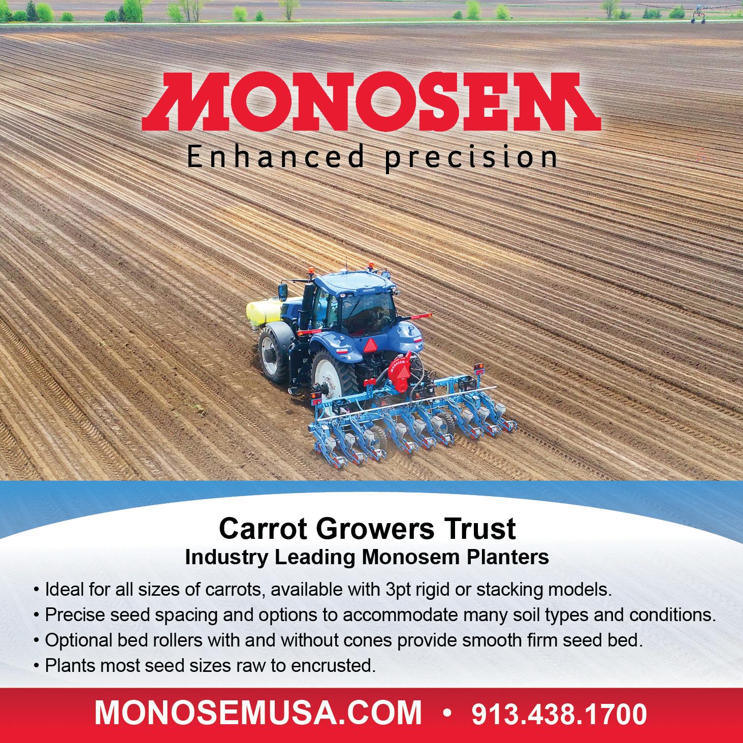 Ecorobotix has some new applications for its ARA Ultra High Precision Sprayer available for use in carrot production. The company has launched its volunteer potato algorithm in carrots. The sprayer uses this algorithm to detect and treat unwanted volunteer potato plants growing within carrot crops, offering carrot growers a technology that can replace manual weeding and reduce input use. In addition, Ecorobotix’s Plant-by-Plant artificial intelligence (AI) no longer only distinguishes between crops and weeds, but also identifies classes such as monocots and dicots within crops. This advanced distinction is now available for select crops including carrots. Visit www.ecorobotix.com.