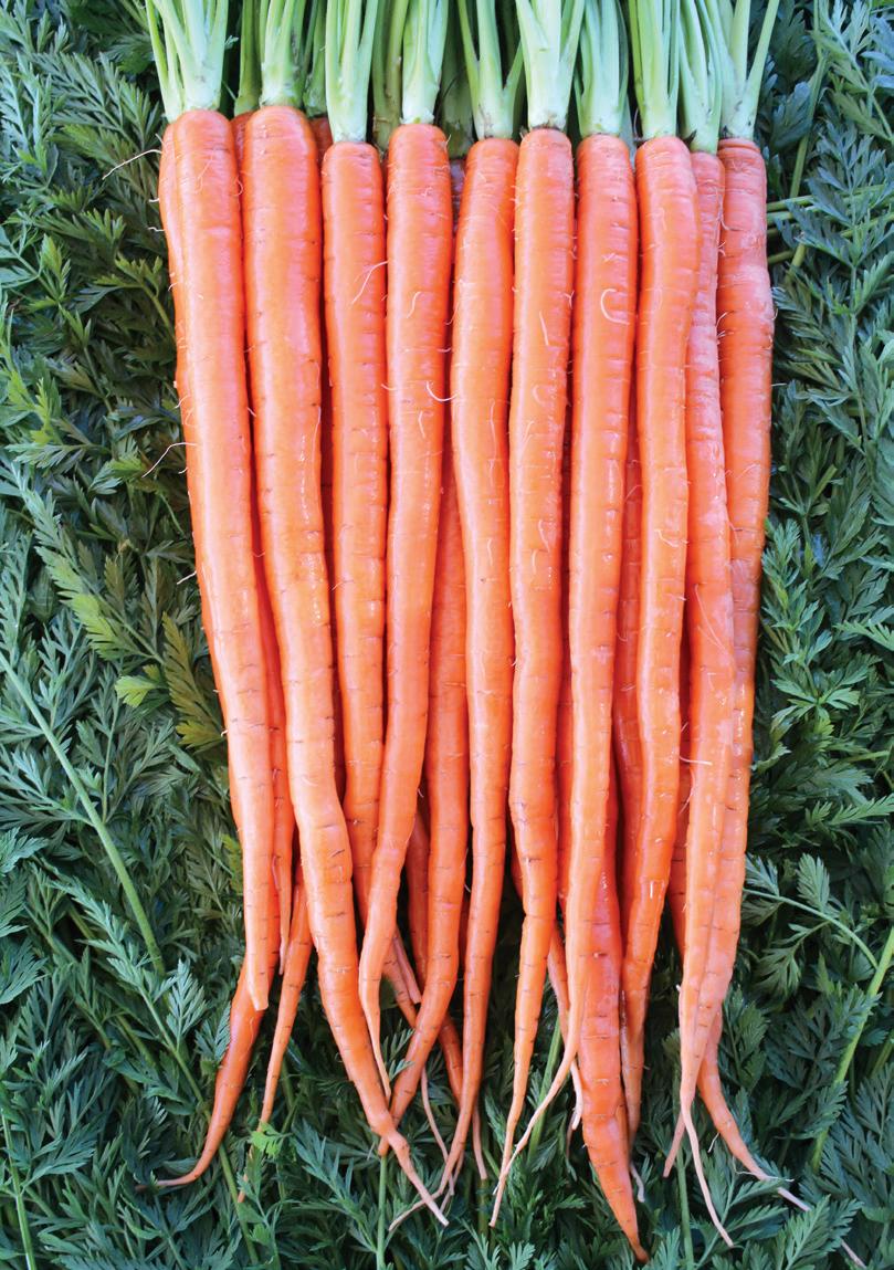 A good-yielding carrot that is well suited for the cut-and-peel industry, this variety is adaptable to different areas with decent tops and uniformity in shape. Roots are 12 to 13 inches and are fairly smooth. This harvest-friendly variety has intermediate resistance to black rot and Cercospora leaf blight.