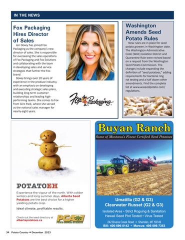 New rules are in place for seed potato growers in Washington state. The Washington Administrative Code (WAC) Isolation District and Quarantine Rule were revised based on a request from the Washington Seed Potato Commission. The changes include expanding the definition of “seed potatoes,” adding requirements for bacterial ring rot testing and a half dozen other amendments. Find the complete list at www.waseedpotato.com/ regulations.