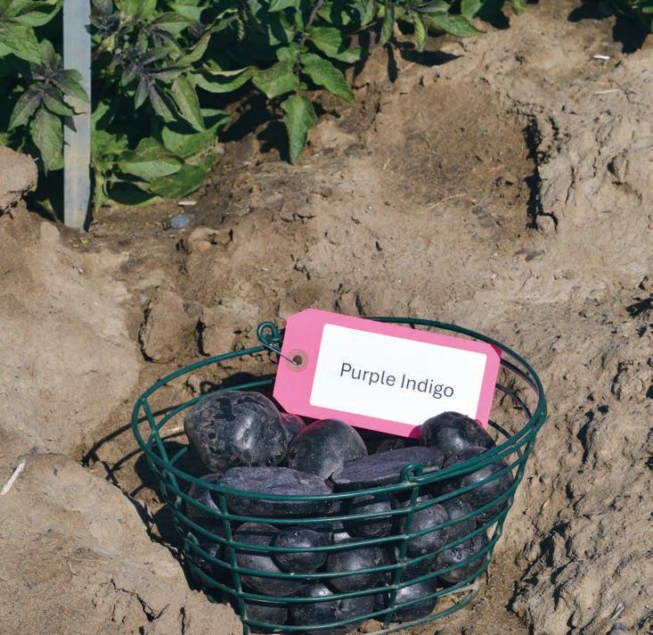 Samples of developmental potato variety Purple Indigo are on display.