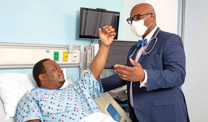 Paul Coyne, DNP ’16, who also holds BS and MS degrees from Columbia Nursing, is senior vice president and chief nurse executive at the Hospital for Special Surgery (HSS), also in Manhattan. He encounters similar assumptions. “Peo ple ask, ‘Why didn’t you want to be a doctor?’” Coyne says. “They don’t realize that I am a doctor.” And, he adds, “Why don’t they ask my wife, who’s also a nurse, that question?