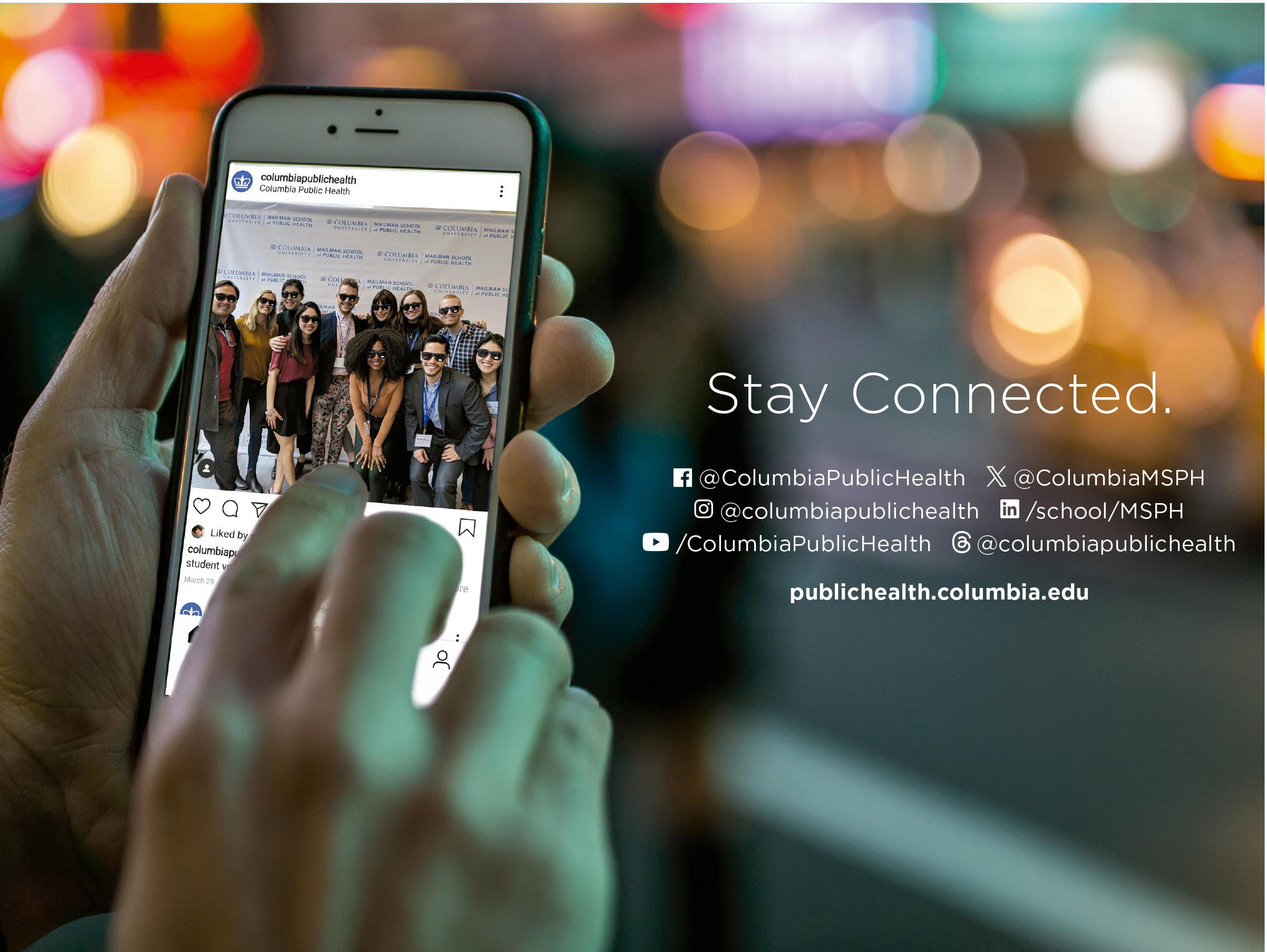 CONNECT WITH US Alumni: msphalum@cumc.columbia.edu publichealth.columbia.edu/alumni