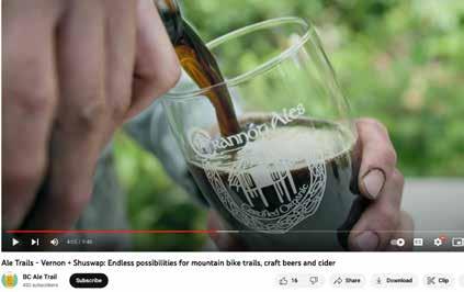 The Shuswap is part of the BC Ale Trail also featuring local craft beer producers in Kamloops, Vernon and Merritt. The benefits include promoting Shuswapspecific photos and videos in the wider region.