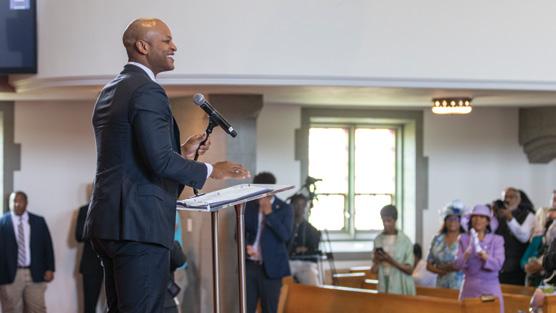 Addressing the packed congregation, he said, “I’m thankful, not just for the congregations of today, but the congregations of the past as well. I’m thankful, not just for this church, but for the Spirit that guides this church. Because 41 years ago, it was this congregation, this church—it was this house of the Lord—that reminded me and my family how loved we were in our time of greatest pain. [This is] the reason I love this area, this church so much.”