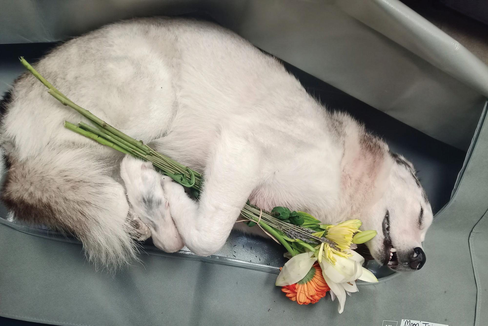 Boxall ran to his truck and grabbed his chainsaw to cut the trap. He rolled Moon over and performed CPR — 30 chest compressions followed by two breaths through the Husky’s nostrils — but it was too late.