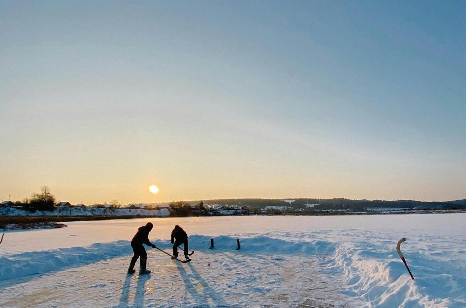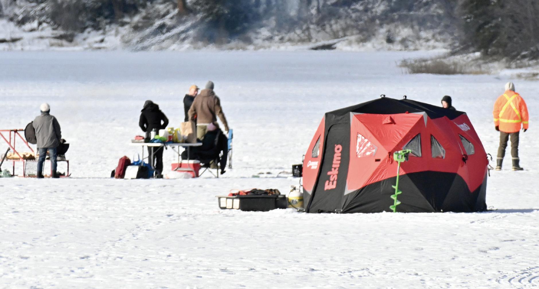 inches of ice on Taynton Bay during the bonspiel. This year, with the freeze on Thursday and Friday night, there was about seven to nine inches — just enough to support the weight of the rinks, shack, picnic tables and mobs of curlers.