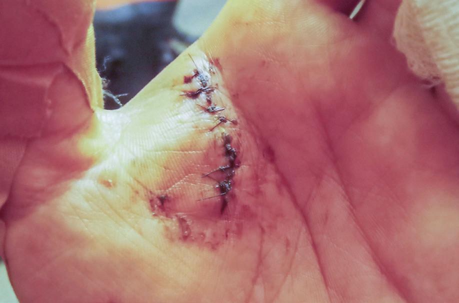 Boxall searched for a mechanism to release the device but found none. He clutched and grabbed at the trap, and pried harder and harder still, ripping his hands so badly that 10 stitches would be needed to