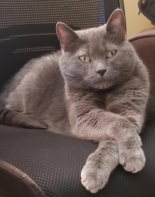 His name is Wallace! He's a gentle giant who loves people, food, and people who give him food. Wally is a big cuddlebug and loves to meow at his family for extra attention!!