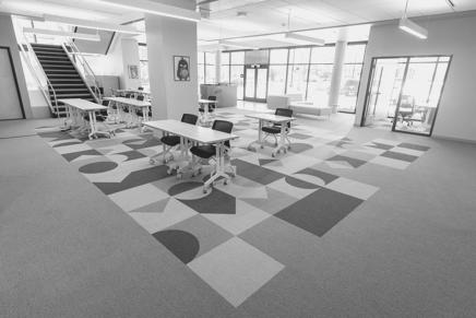 Residents may use their key card to access a private staircase to the NextWork space, which is open to residents between the hours of 8AM and 10 PM.
