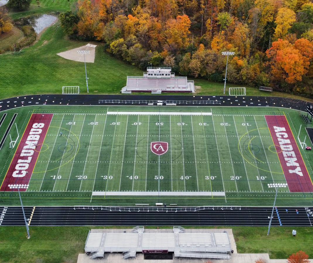 After full funding from John and Linda Hondros and their children Morgan, Cody ’00, Kelly ’06 and Hobie ’08, the Columbus Academy board of trustees voted to rename the stadium Hondros Field. A $1.25 million project completed by TurfFields in August 2014 replaced the stadium grass field with state-of-the-art artificial turf primarily used for football, lacrosse and soccer. The Hondros family’s gift encouraged several other Academy families to give anonymously in order to fund a second all-weather field, which was installed on the west side of campus next to the existing field hockey and lacrosse area out at Carlin Fields. As a result, Columbus Academy became one of the few Central Ohio schools to have two all-weather surfaces for practices and competitions.