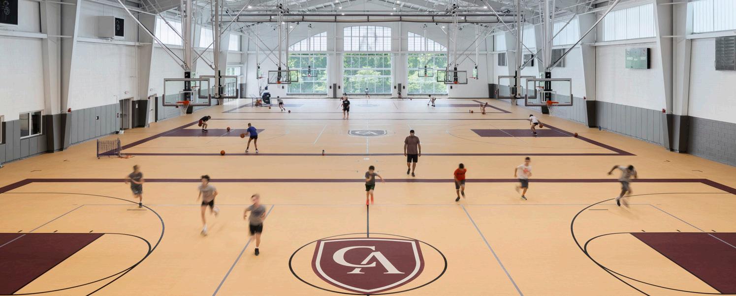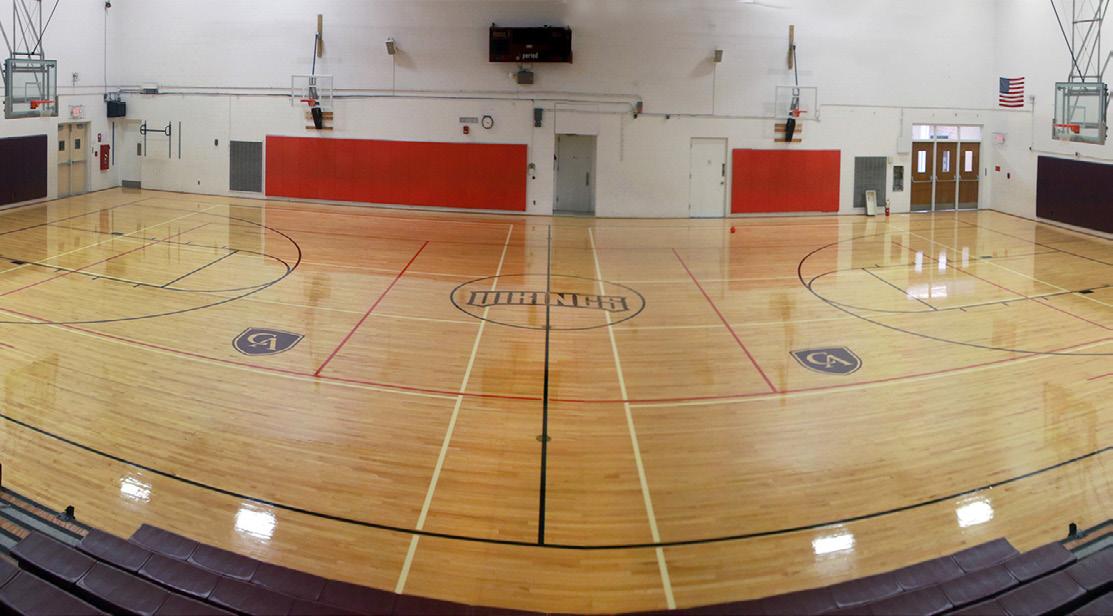 The Jones Gym primarily serves our middle school basketball and volleyball teams, while also providing ample indoor practice space for outdoor sports during times of inclement weather throughout the fall and spring seasons. The gym is equipped with six basketball hoops, a full-size court and bleacher-style seating for guests and fans.