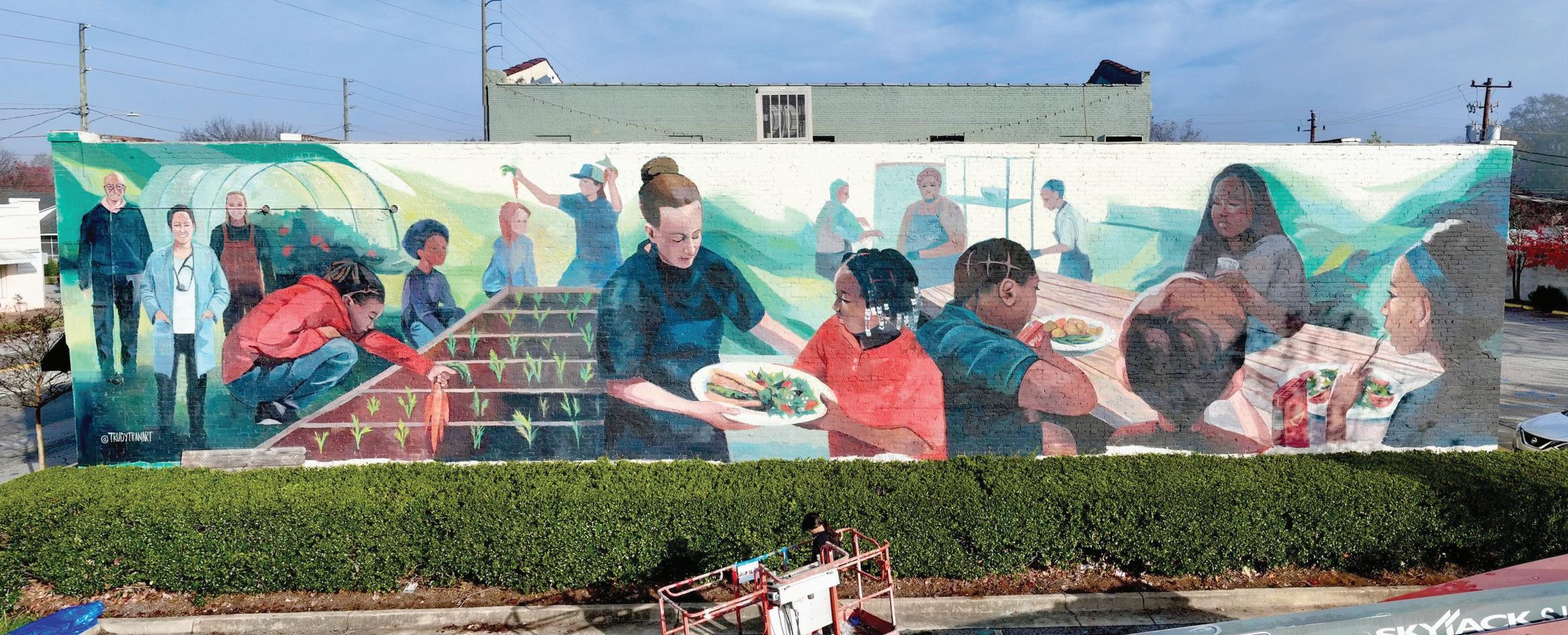 photo by SE Photography Mason Lampton, Sr., accompanied by his children Mason Lampton, Jr and Lucile Cogswell, was inducted into the Hall of Fame by Boys and Girls Club President & CEO Rodney CloseColumbus 2025’s Vibrant and Connected Places Action Area recently unvelied two murals as part of the Painted Spaces Project. The mural that is located on the side of The Food Mill on Second Avenue (above) was painted by Trudy Tran. This mural depicts community, hospitality and service as people gather to share a meal together. The