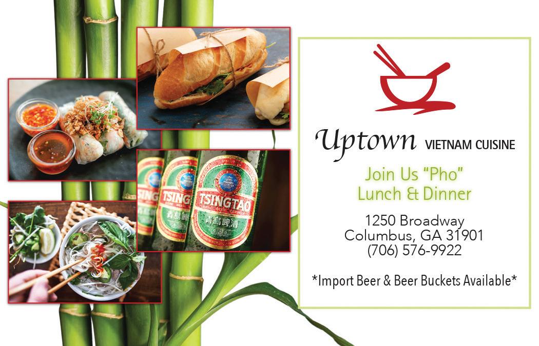Uptown Vietnam Cuisine offers authentic, traditional Vietnamese dishes that are both delicious and healthy, featuring fresh ingredients and a variety of flavorful spices. Dine-in, carry-out and party trays are available, as well as a 10 percent military discount.