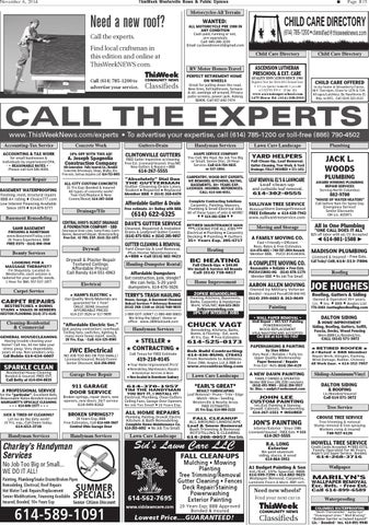 Find local craftsman in this edition and online at ThisWeekNEWS.com. Call (614) 785-1200 to advertise your service.