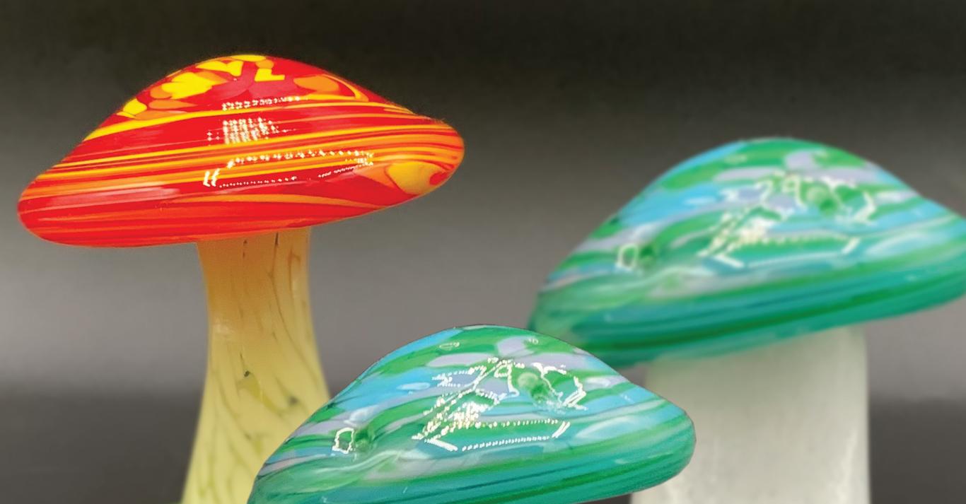 artists like Peter Max and Ida Kohlmeyer, as well as lesser-known talents such as Jolán Gross-Bettelheim, Marguerite Wildenhain, and Marty Kalb. Many of these makers, who became naturalized U.S. citizens during the first half of the 20th century, contributed to the transformative wave of immigration that shaped American modernism over the course of the twentieth century. The Straus family, sometime residents of Columbus, are spotlighted with the inclusion of a stunning pair of goblets from their Brilliant-Period cut glass manufactory (fig. x).