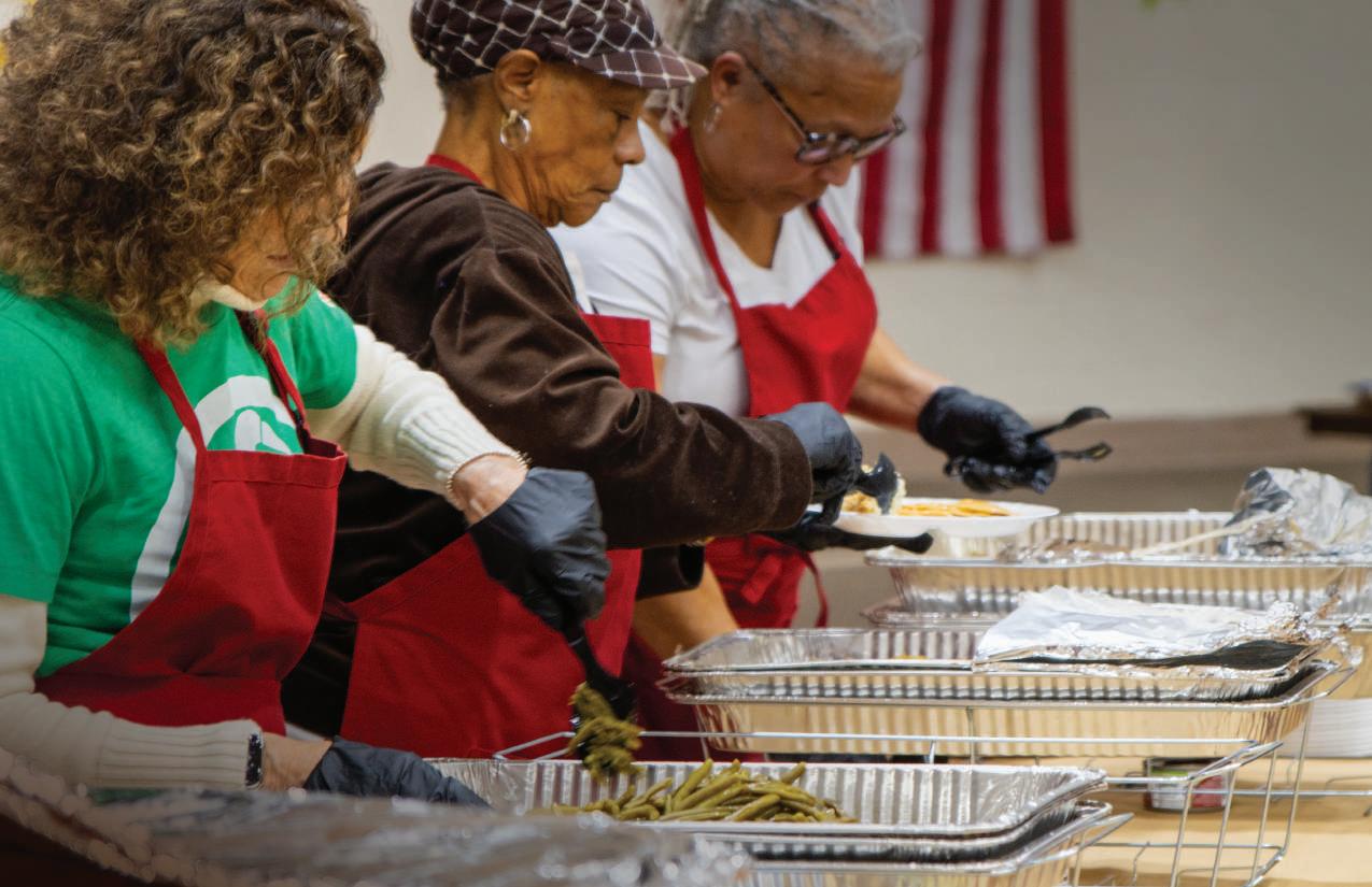 Crane Group and community volunteers serve food at Barack Community Center during the holiday season as part of our Adopt a Center program.