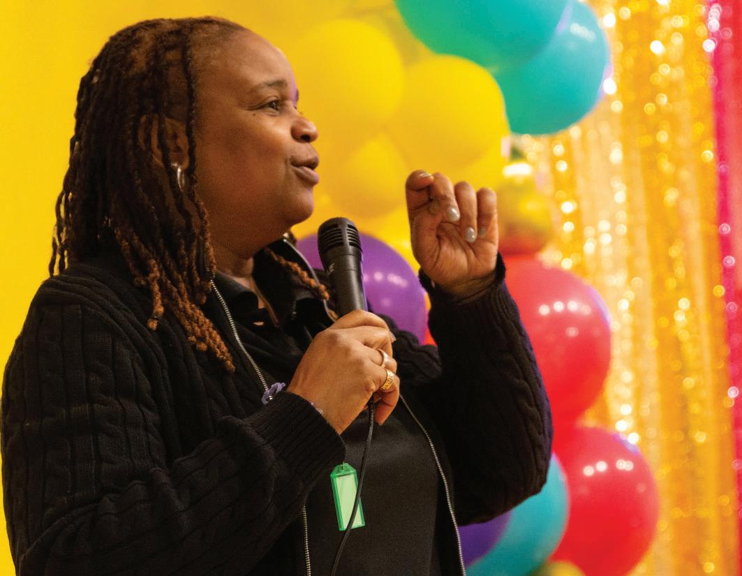 Director Reese addresses participants in the department’s Girls Empowerment Day program.