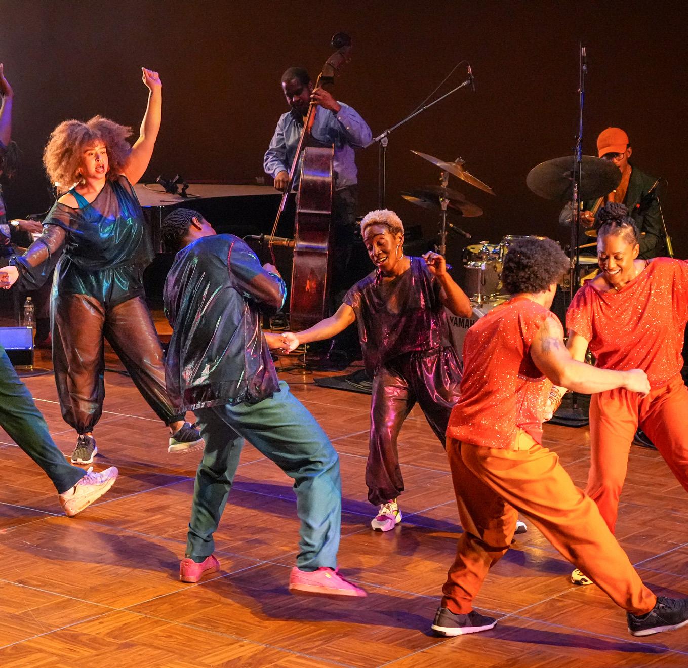 The Jazz Continuum was supported and presented by Guggenheim Works & Process and Jacob’s Pillow Dance Festival in 2021. LaTasha Barnes received a 2022 National Dance Project production grant for the further development of The Jazz Continuum by the New England States Touring program of the New England Foundation for the Arts, made possible with funding from the National Endowment for the Arts Regional Touring Program and the six New England state arts agencies. The presentation of The Jazz Continuum at the Joyce Theater in October, 2022 marked the work’s proscenium premiere. The Jazz Continuum was also presented at the Williams Center for the Arts at Lafayette College, Celebrity Series Boston, Bates Dance Festival, The Kennedy Center for The Performing Arts, the University Musical Society at University of Michigan and is honored to be presented here at The Dance Center at Columbia College Chicago.