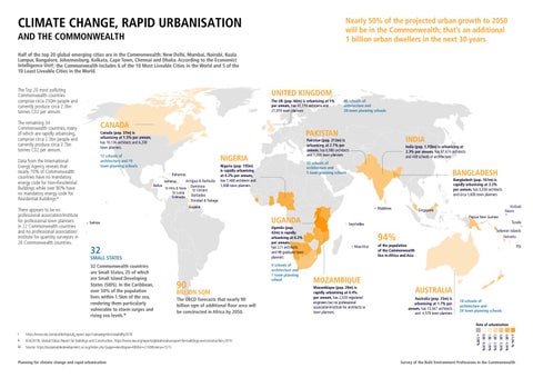 The remaining 34 Commonwealth countries, many of which are rapidly urbanising, comprise circa 2.3bn people and currently produce circa 2.7bn tonnes C02 per annum.