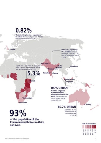 89.7% URBAN Australia is 89.7% urbanised with an urbanisation rate of 0.82%