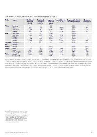 7.2.3 NUMBER OF REGISTERED ARCHITECTS AND GRADUATES IN EACH COUNTRY Region