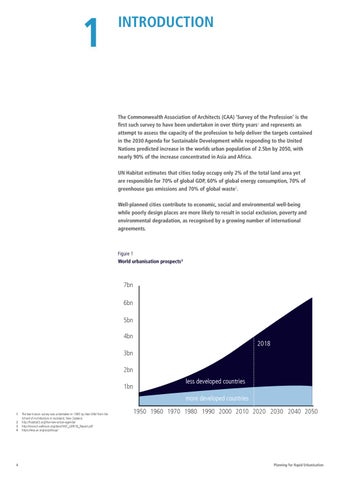 The Commonwealth Association of Architects (CAA) ‘Survey of the Profession’ is the first such survey to have been undertaken in over thirty years1 and represents an attempt to assess the capacity of the profession to help deliver the targets contained in the 2030 Agenda for Sustainable Development while responding to the United Nations predicted increase in the worlds urban population of 2.5bn by 2050, with nearly 90% of the increase concentrated in Asia and Africa. UN Habitat estimates that cities today occupy only 2% of the total land area yet are responsible for 70% of global GDP, 60% of global energy consumption, 70% of greenhouse gas emissions and 70% of global waste2. Well-planned cities contribute to economic, social and environmental well-being while poorly design places are more likely to result in social exclusion, poverty and environmental degradation, as recognised by a growing number of international agreements.
