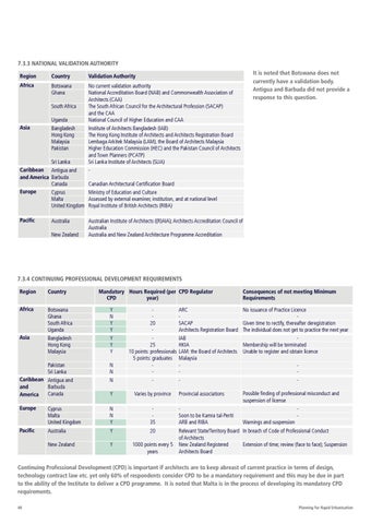 No current validation authority National Accreditation Board (NAB) and Commonwealth Association of Architects (CAA) The South African Council for the Architectural Profession (SACAP) and the CAA National Council of Higher Education and CAA
