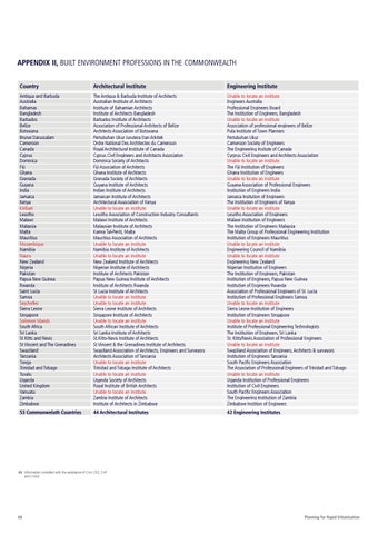 APPENDIX II, BUILT ENVIRONMENT PROFESSIONS IN THE COMMONWEALTH Country