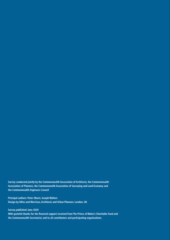 Survey conducted jointly by the Commonwealth Association of Architects, the Commonwealth Association of Planners, the Commonwealth Association of Surveying and Land Economy and the Commonwealth Engineers Council Principal authors: Peter Oborn, Joseph Walters Design by Allies and Morrison, Architects and Urban Planners, London, UK Survey published: June 2020 With grateful thanks for the financial support received from The Prince of Wales’s Charitable Fund and the Commonwealth Secretariat, and to all contributors and participating organisations.