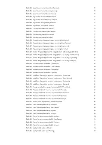 Table 50 Regulation of the Surveying Profession